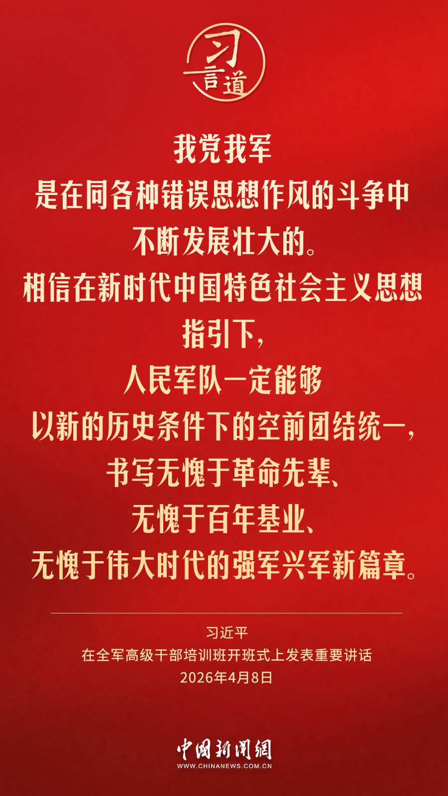 全军高级干部培训班8日在国防大学开班。中共中央总书记、国家主席、中央军委主席习近平出席开班式并发表重要讲话。他强调——