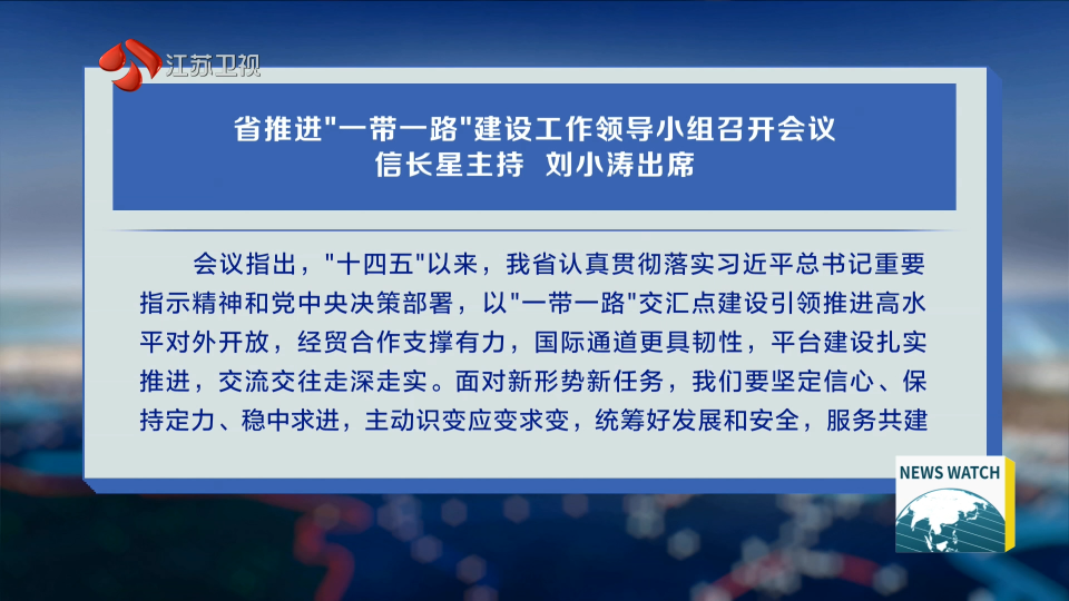 4月9日,省推进“一带一路”建设工作领导小组召开会议,深入学习贯彻习近平总书记关于共建“一带一路”的重要论述和对江苏工作重要讲话精神,研究部署今年重点任务。省委书记、领导小组组长信长星主持会议并讲话,省长、领导小组组长刘小涛就具体工作作安排。