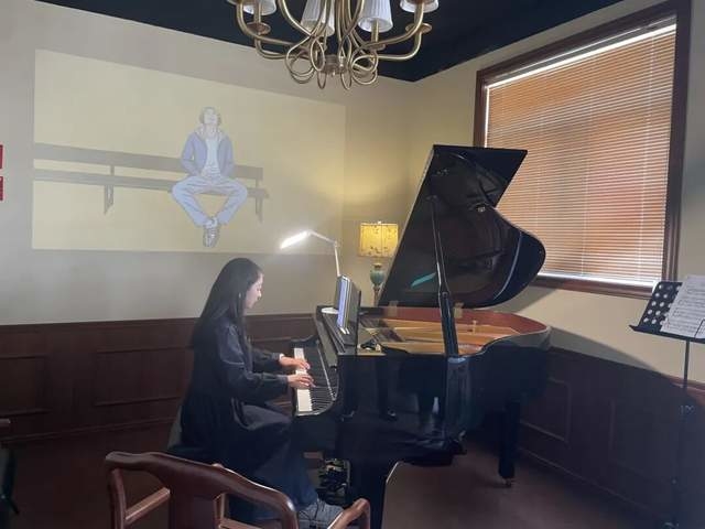 御码头菁羽音乐工作室主理人王老师在弹琴。澎湃新闻记者邢燕摄