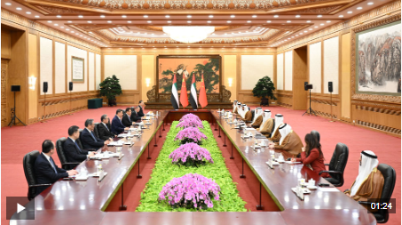 哈立德说:“主席阁下,阿联酋和中国的关系历史悠久、根基深厚。阿联酋高度重视同中国的伙伴关系。我们致力于进一步推动两国关系向前发展,开拓更广阔的前景。”
