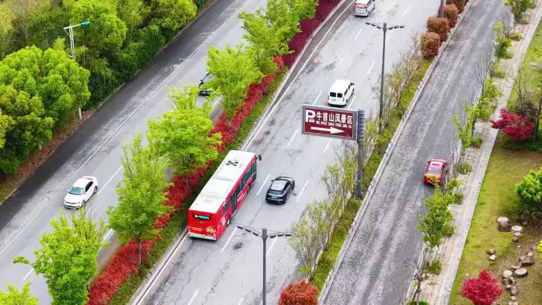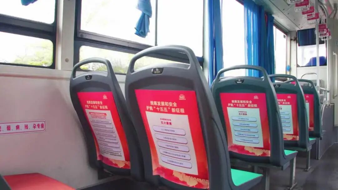 在地铁1号线天隆寺站外,市民周先生登上了一辆红色公交车,被满眼的国家安全教育的氛围吸引,这便是江宁公交集团新推出的“美丽江宁一号线”。作为国安主题公交,该车车身以红色为主色调,喷绘“统筹发展和安全,护航‘十五五’新征程”等标语。走进车厢,拉手、座椅背张贴总体国家安全观宣传五大要素、五个统筹,车载视频循环播放公益广告。