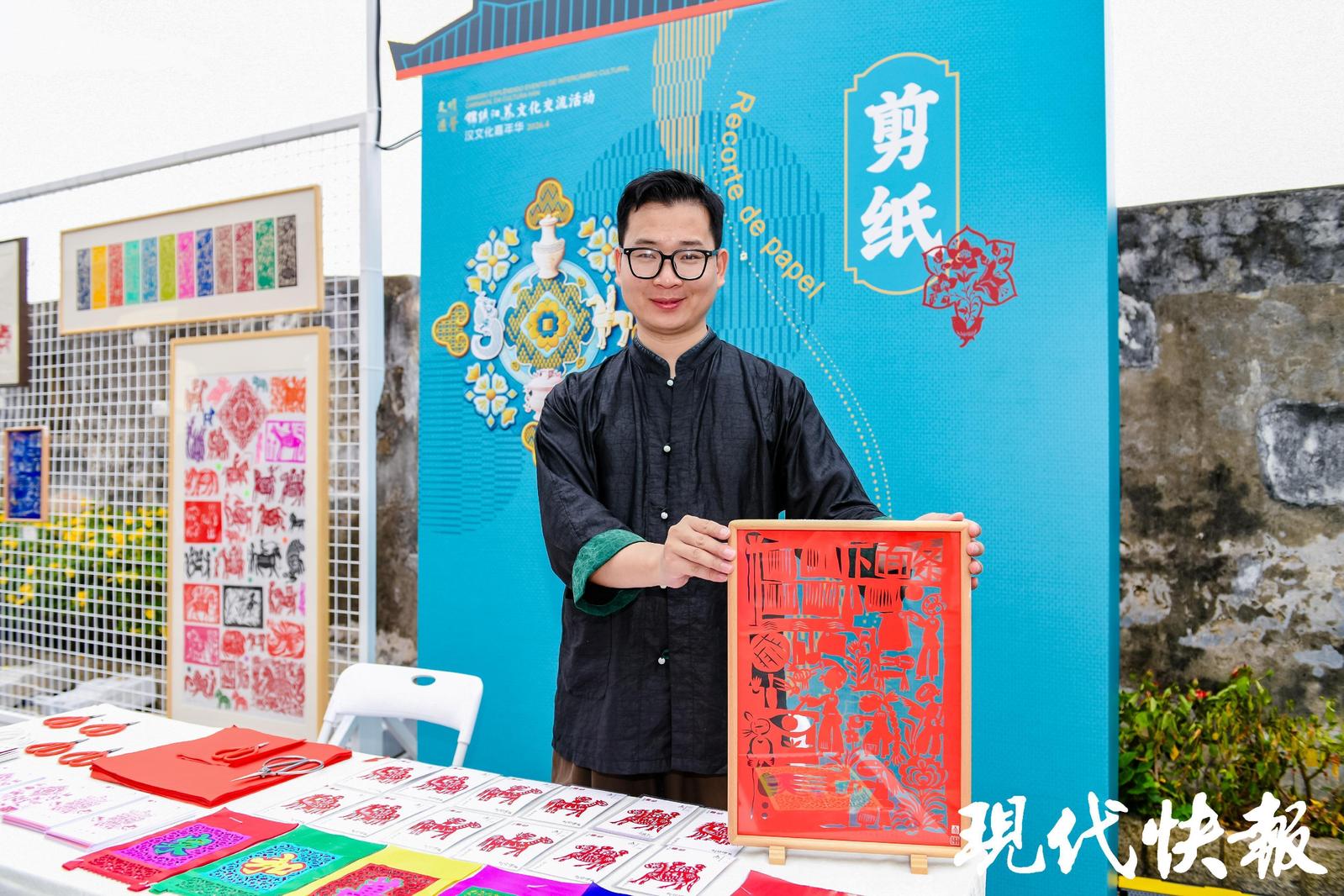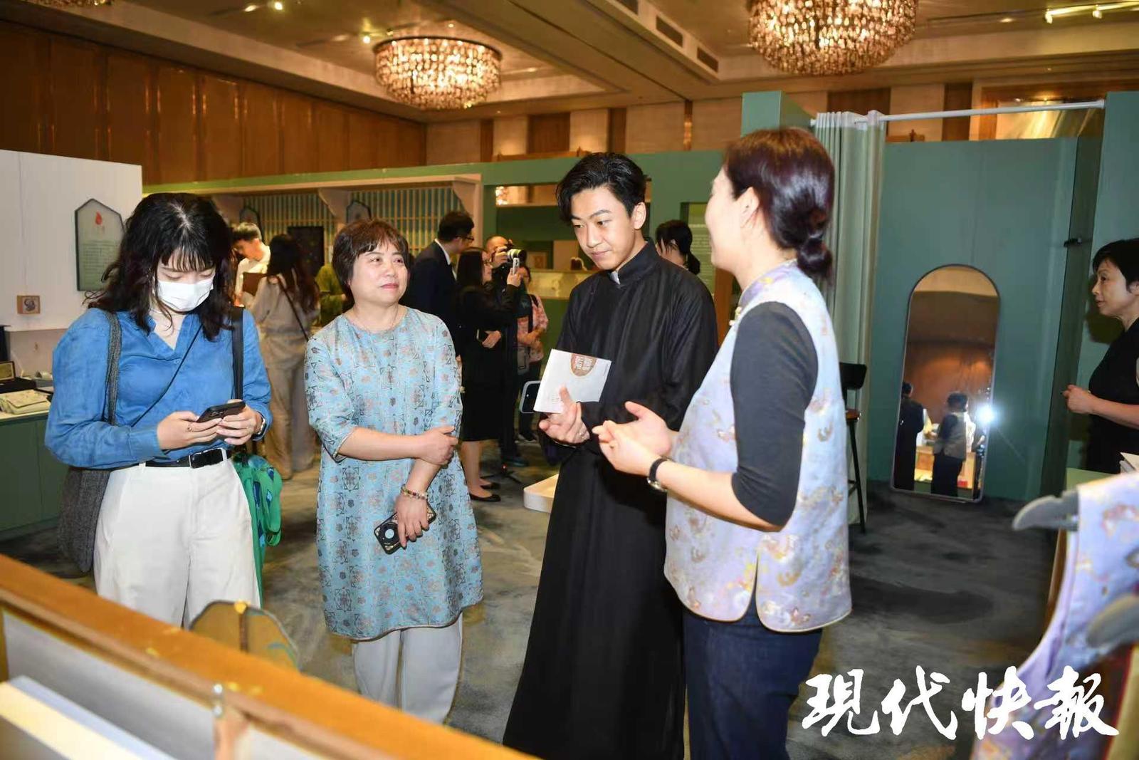 香港理工大学时装及纺织学院助理教授吴国禧儒雅俊朗,身上一件中式长衫格外吸睛。他告诉现代快报记者,这件长衫融合了三项国家级非遗技艺——吴罗织造技艺、佛山香云纱制作技艺、香港中式长衫制作技艺。这更是让周围年轻人投去“羡慕”的目光。他还告诉记者,三年前他的团队就去苏州实地取经,“我们从苏州的非遗保育和产业化工作中,获得了很大启发”。吴国禧还当场“下单”了一件苏绣作品。