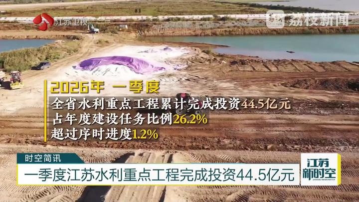 记者从江苏省水利工程建设局获悉,一季度,江苏水利重点工程累计完成投资44.5亿元,占年度建设任务比例26.2%,超过序时进度1.2%。其中,省重大水利项目累计完成投资25.05亿元,淮河入海水道二期工程五大枢纽、吴淞江(江苏段)整治工程、青阳港大孔闸工程、长江扬中河段二期(应急治理)工程等重大水利项目正按时序进度稳步推进。