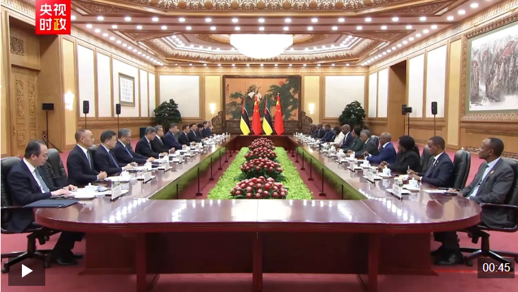 4月21日下午,国家主席习近平在北京人民大会堂同来华进行国事访问的莫桑比克总统查波举行会谈。