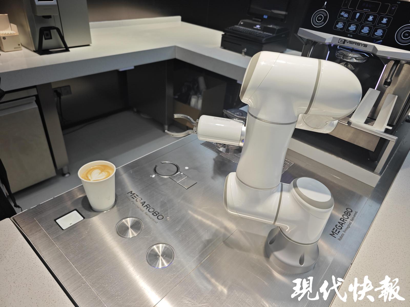 据悉,镁伽科技致力于为智能制造场景提供,全面的自主智能体及多智能体解决方案。其骐骥实验室现场展示了现制饮品智能设备,设备除了可以制作常规咖啡,也可以进行咖啡拉花等操作。该设备的咖啡拉花,可以模拟还原拉花大师的手法,一分钟即可完成一杯拉花咖啡,在保证质量的同时能兼顾产量,做到“千杯一律”“一人旗舰店”。