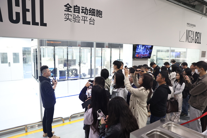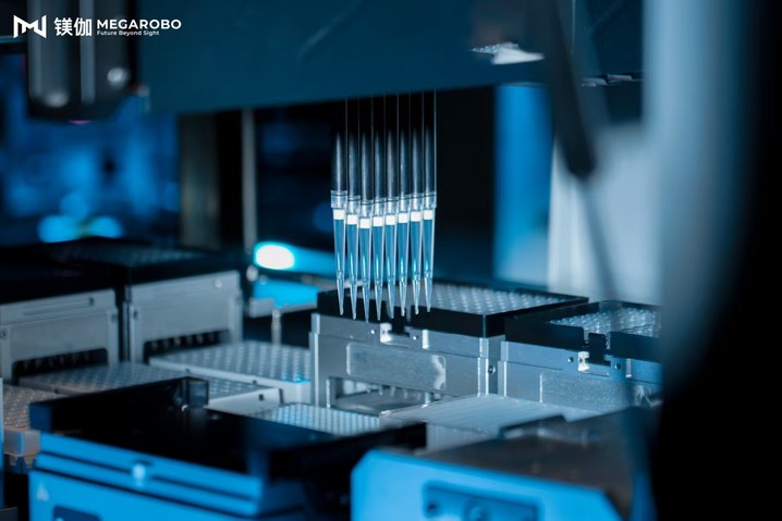 在苏州镁伽科技有限公司的“鲲鹏实验室”,由中央调度系统指挥的“未来实验”吸引了大家的关注。实验室内无人值守,机械臂、自动化培养箱、智能移液工作站等设备自动执行任务,它们通过精准协作,自主完成核酸提取、细胞培养等复杂操作,由AI驱动的流程解放了实验人员的双手,正在重塑传统科研模式。