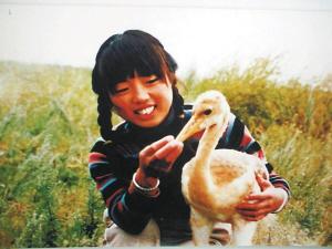 “她刚到这里时,无法咽下用咸水做的饭,病了一场。病好后,就钻进鹤棚,照料雏鹤。她常把雏鹤抱在怀中仔细观察,晚上还把它带到床上一起睡觉,腥臭的鹤粪拉在身上、被子上、席子上,也毫不在乎。那时没有自来水,更没有电,夜里寂寞睡不着时,她会弹起吉他,对着小鹤们唱歌。”往事对贾翠梅来说,仿佛历历在目。