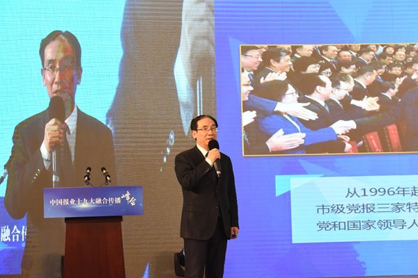 盐阜大众报报业集团党委书记、社长朱志和发表主题演讲