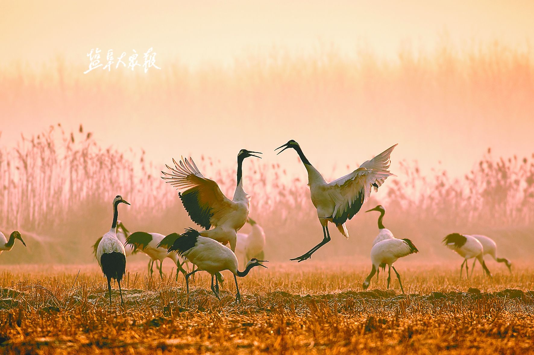 江苏盐城湿地珍禽国家级自然保护区每年都吸引丹顶鹤来此越冬,场面十分壮观。盐阜大众报报业集团全媒体记者 陈健强 谭 明 杨国美 孙华金 王金成 王亚洲 孙海鹏 摄