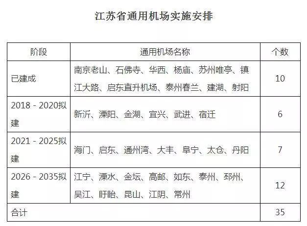 据了解,截至2017年底,江苏全省建成南京老山等10个通用机场,此外,还在建徐州新沂和常州溧阳2个通用机场,数量和密度位居华东地区首位。