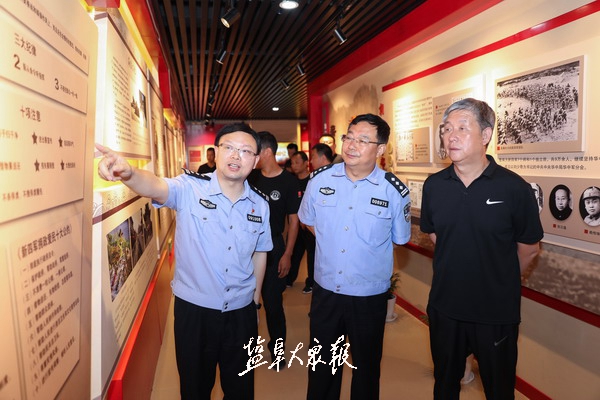 7月12日,在盐都区公安局盐渎派出所,来自铜川市公安局的第二批学习观摩团连连点赞、拍照记录。这是盐城、铜川警务合作交流的一个缩影。为贯彻落实省市对口扶贫工作部署,推动盐城市与铜川市的警务交流和精准扶贫工作,盐城、铜川两地警方按照扶贫协作交流合作意向,通过考察学习、意见交流、干部锻炼、科技支持等方式,积极开展警务合作交流,互相学习、取长补短,努力探索出一条警务合作、精准扶贫的新路子。图为铜川市公安局学习交流团参观新四军纪念馆。盐阜大众报报业集团全媒体记者 陆荣春