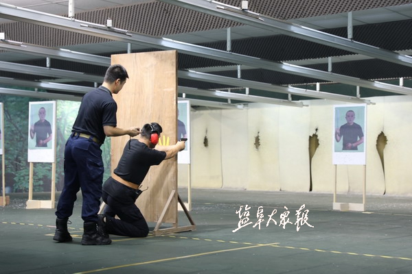 图为铜川市公安局民警在盐城进行手枪射击训练。