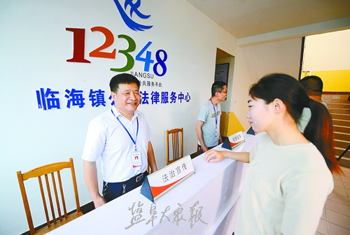 路乃国(左一)正在给老百姓提供法律咨询服务。盐阜大众报业集团全媒体记者 万者进 刘钟越 通讯员 戴超 摄