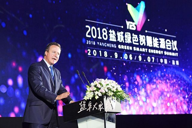 英国前首相戴维·卡梅伦发表主旨演讲。盐阜大众报报业集团全媒体记者 王金成 王亚洲 李思远 郜野乔 摄