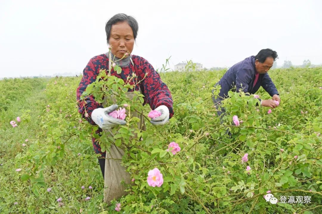 ▲村民朱粉翠和蒋瑞张利用农闲时间在盐都区郭猛镇锦叶玫瑰园上班