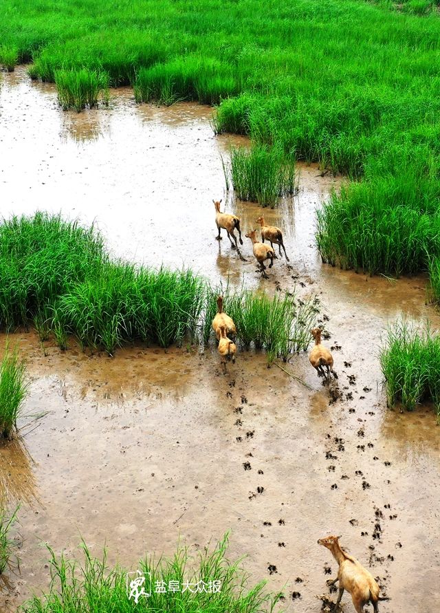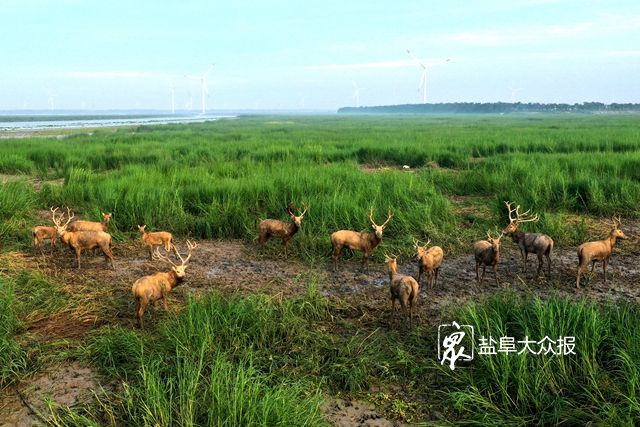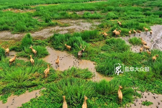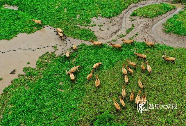 大约50头麋鹿现身江苏盐城条子泥世界遗产地