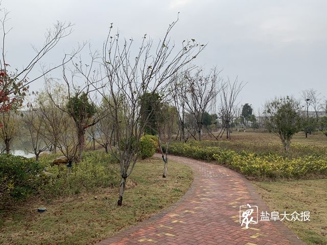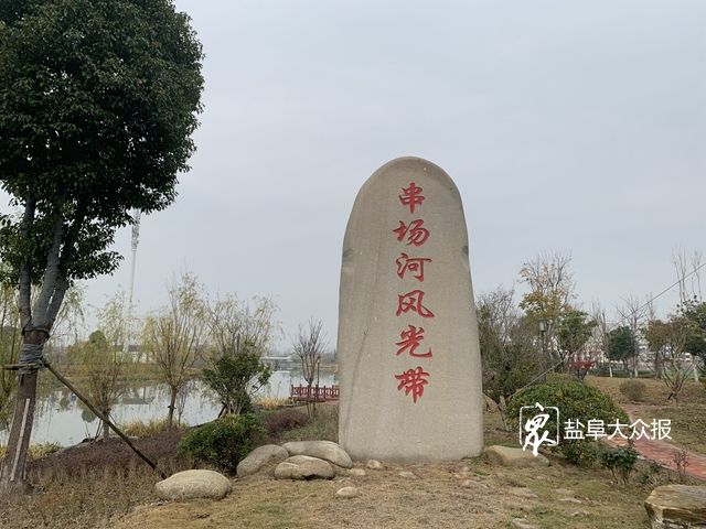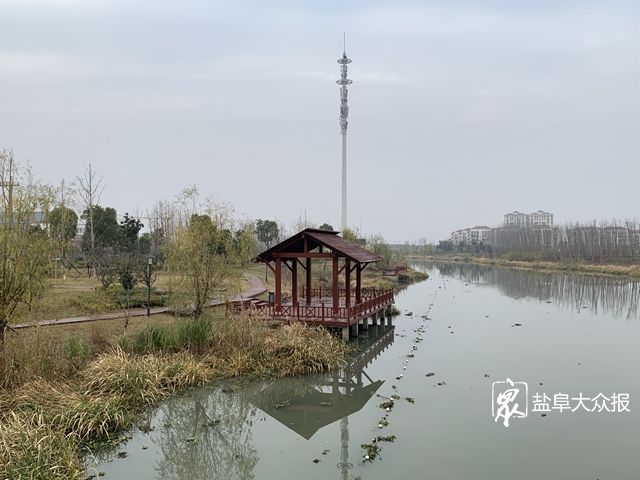 12月7日上午,在串场河建湖段港口大道景观处,记者看到此处的串场河河面干净整洁,河水静静流动,即使是在仲冬时节,岸边的景观带也是风景秀丽、环境优美,景观带深处时而有周边的居民带着小孩在此散步游玩。