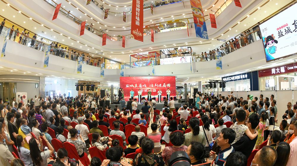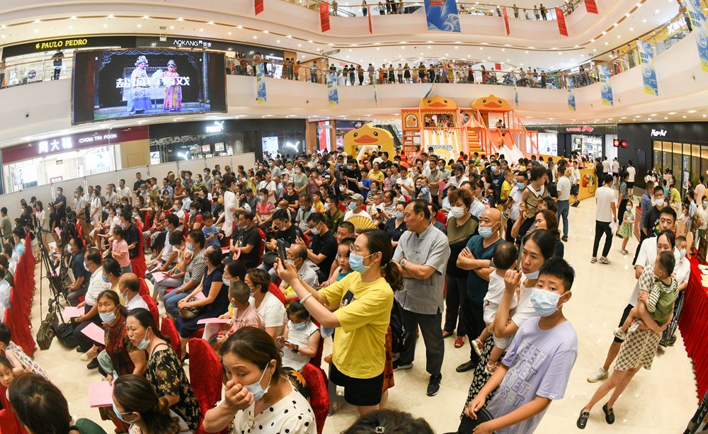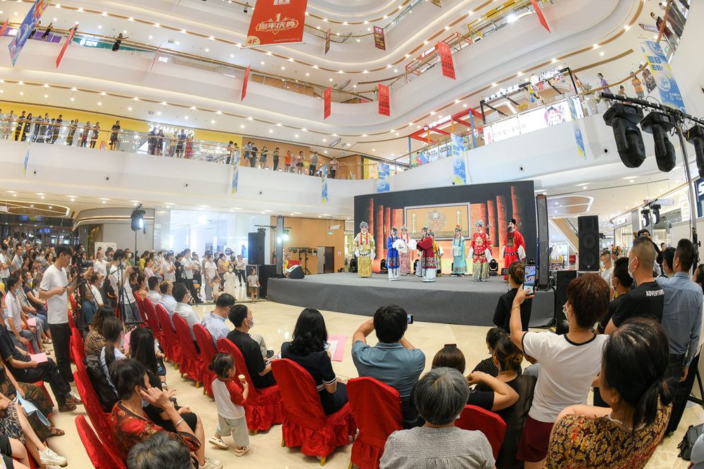 7月9日晚, 由盐城市文化广电和旅游局、亭湖区人民政府主办的“盐城真有戏·淮剧进商圈”活动首场演出在悦达889商业广场奉献给市民。为充分展示盐城非遗文化魅力,搭建传统戏曲展示平台,以“非遗+商场”的模式,凸显以文促商,文商结合的经营理念。从7月上旬开始,“盐城真有戏·淮剧进商圈”系列活动的常态化演出将在悦达889商业广场、竹林大饭店等商圈定期进行。盐阜大众报报业集团融媒体记者 周晨阳 摄