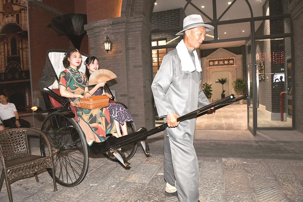 7月8日晚上8点,位于盐都区潘黄街道的“渎上·老西门”商业街区灯火通明,忙碌了一天的市民走上街头,走进非遗展示、音乐酒吧、登瀛老茶馆……品味人间烟火,体验一城繁华。
