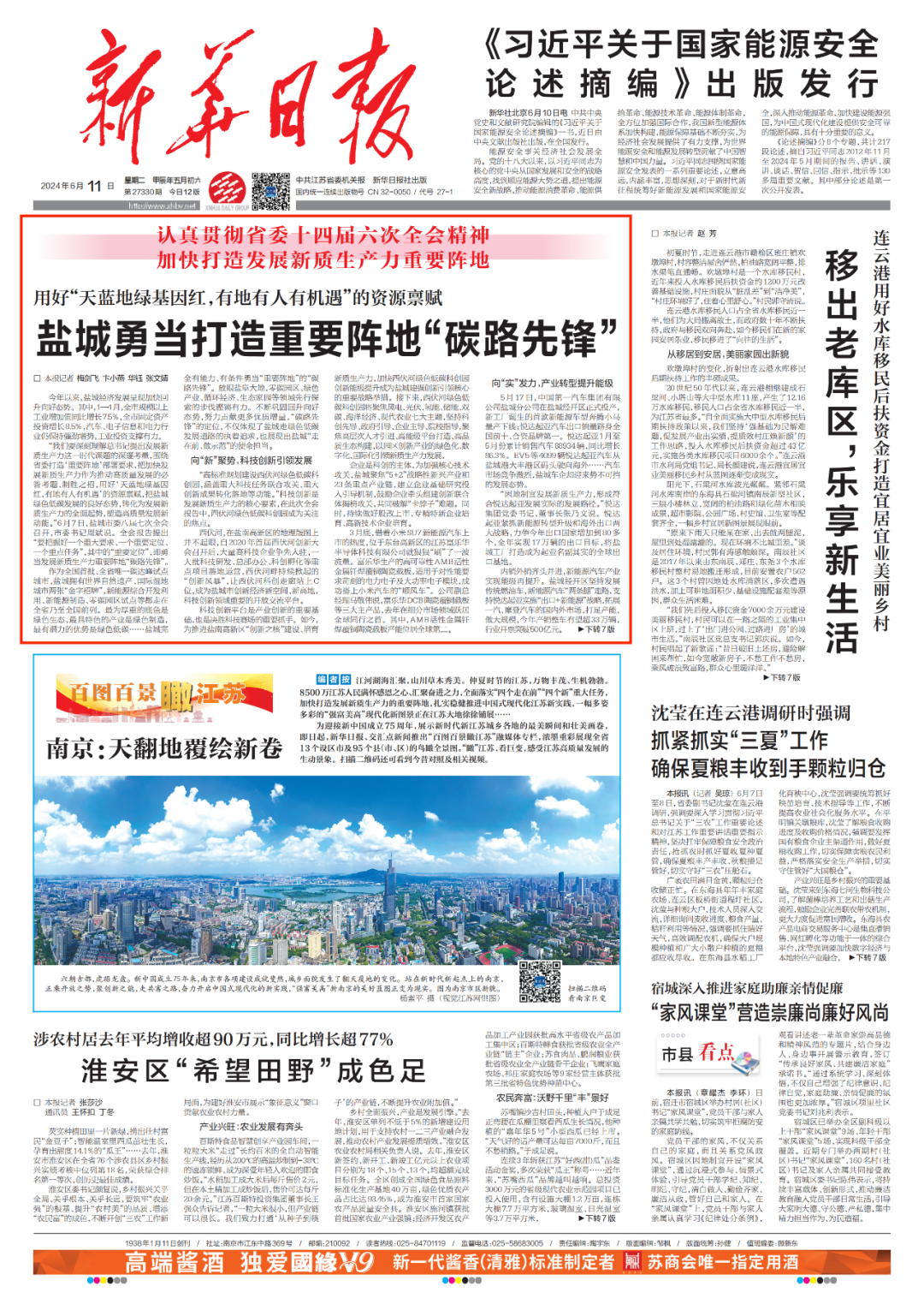 《新华日报》头版头条点赞盐城