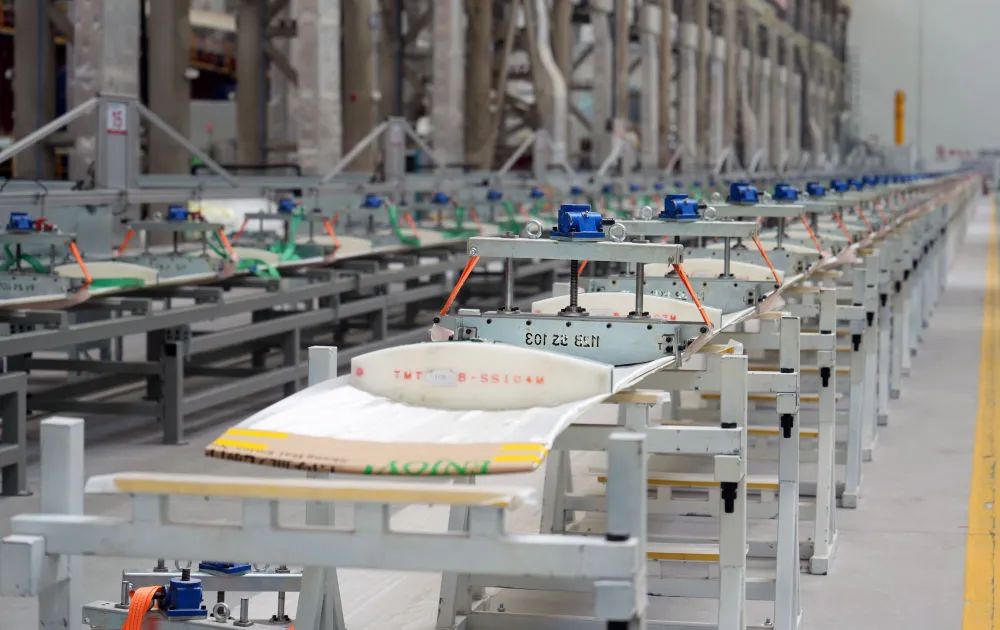 作为风电行业领军企业,中车风电从去年下半年开始,在新装备、新材料、新工艺技术等方面不断发力,研发试制和生产海上大兆瓦级、百米级大叶型产品,目前,中车集团正在加紧研发150米超大叶片,131米超大叶片即将进入射阳工厂组装。去年,中车射阳工厂三期项目实现产值20亿元。