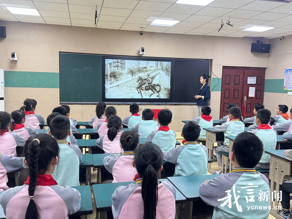 “同学们,你们知道‘新马泰’吗?那你们知道盐城的‘新马泰’是哪里吗?”随着栩栩如生的沙画展示,盐城三个与新四军相关的红色地标——新四军纪念馆、新四军重建军部纪念塔(大铜马)、新四军重建军部旧址(泰山庙),一一跃入同学们的眼帘。一幅幅生动的漫画,一段段感人的故事,一首首荡气回肠的歌曲……在课堂上,同学们仿佛亲历革命年代,与先烈同行。