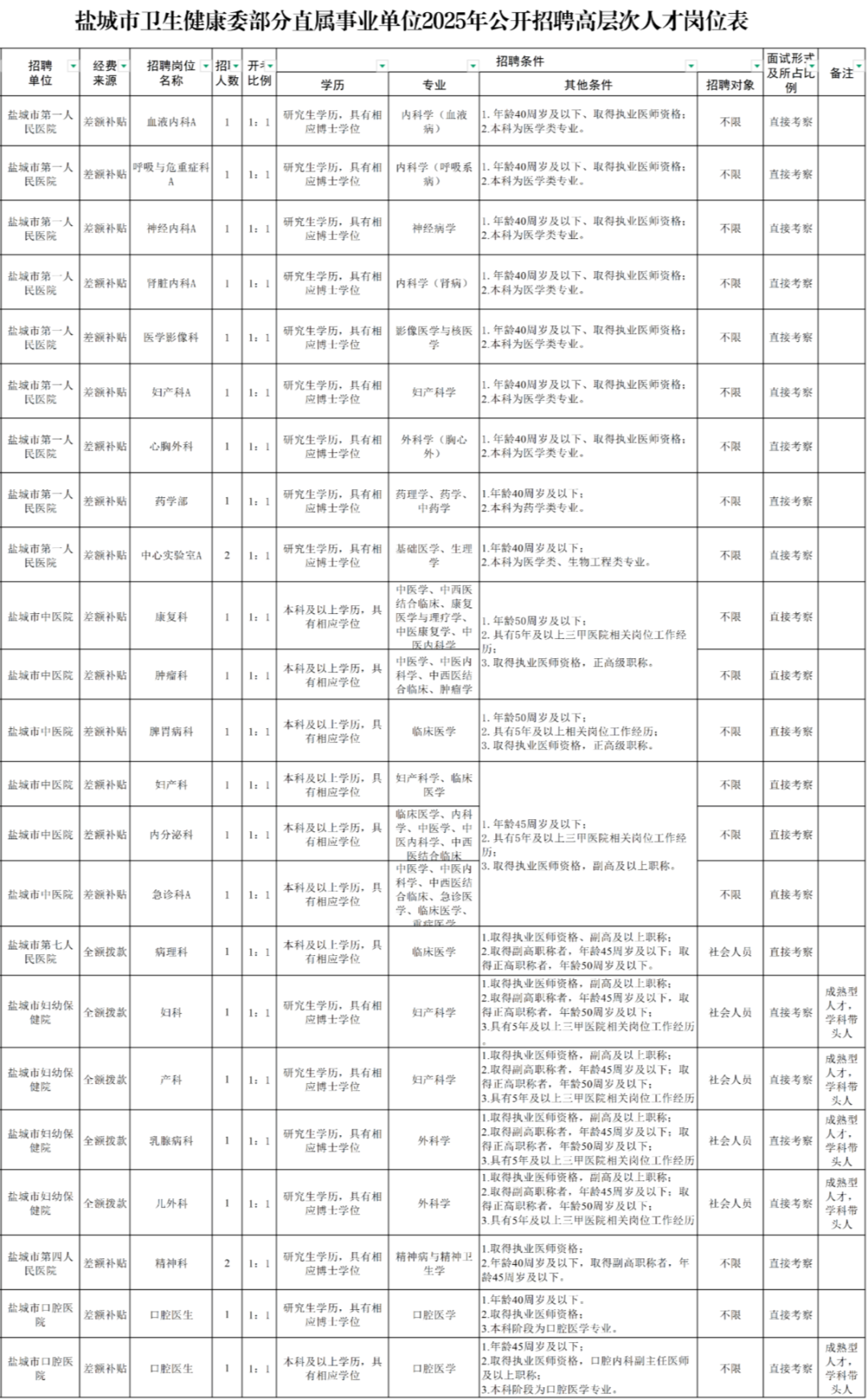 为进一步加强卫生人才队伍建设,更好地选拔优秀适岗人才,优化人员结构,盐城市卫生健康委部分直属事业单位面向社会公开招聘高层次人才25名。