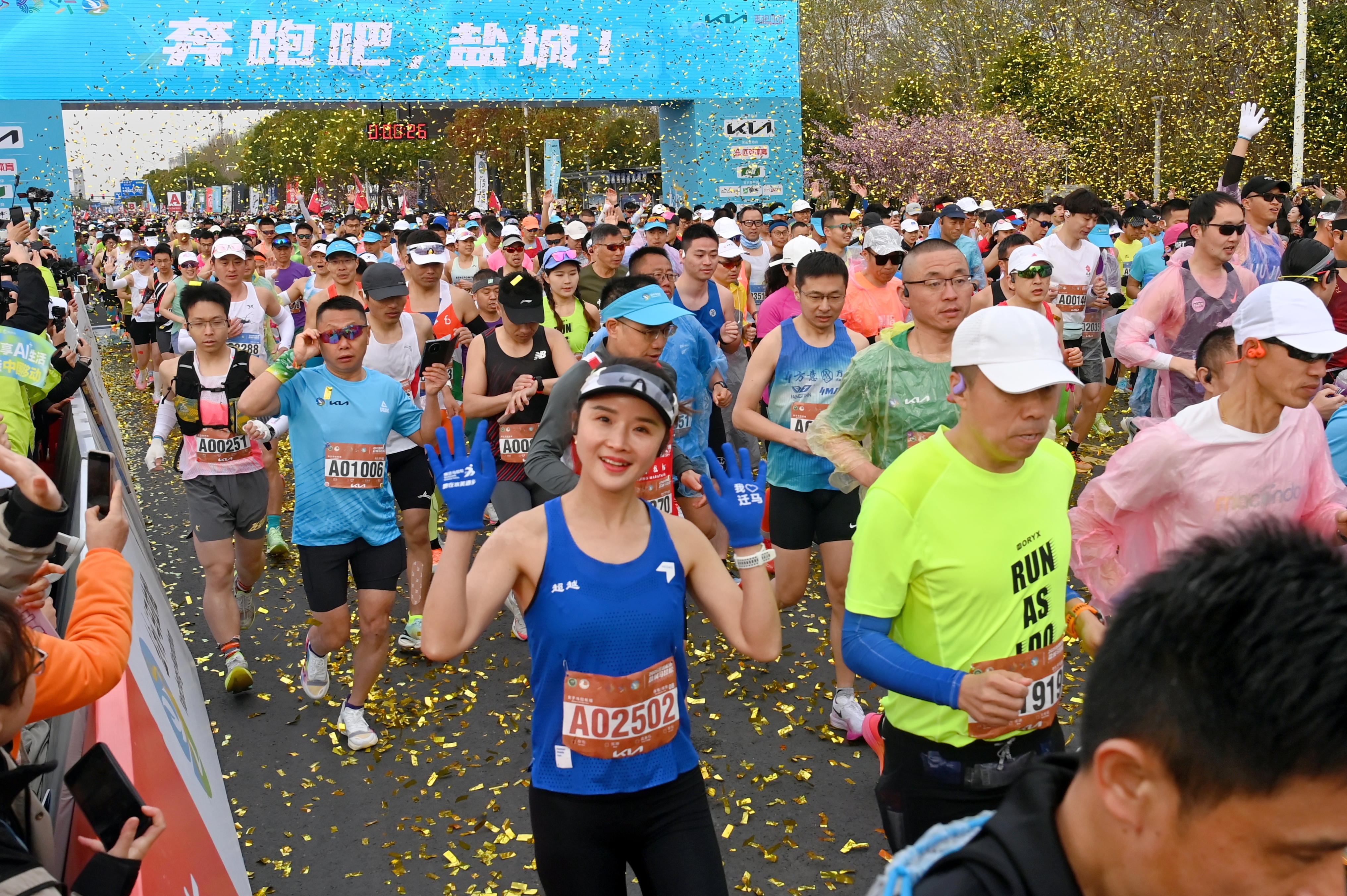 3月30日上午7点30分,2025悦达起亚盐城马拉松暨大运河马拉松系列赛(盐城站)在盐城奥体中心北门正式开跑。