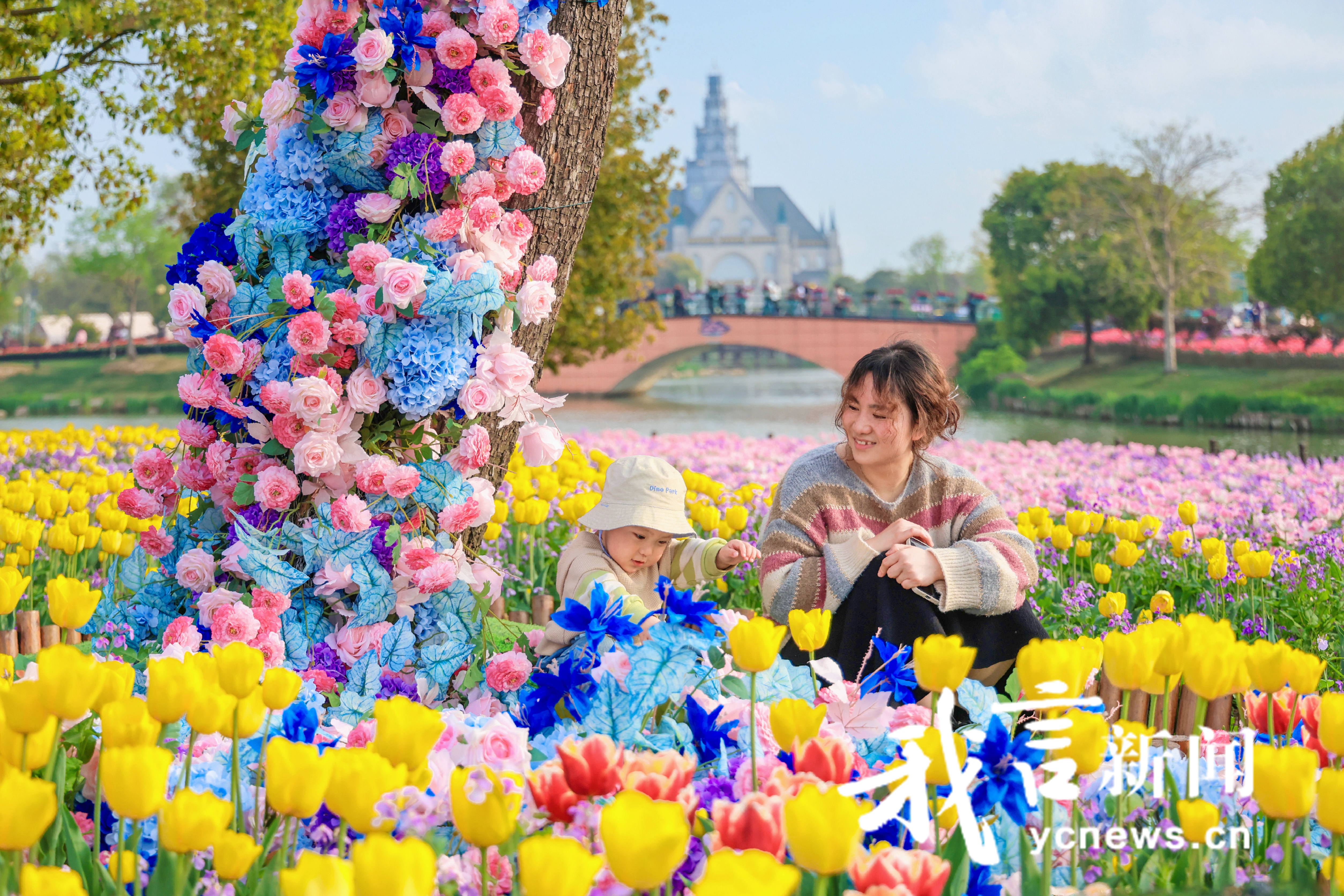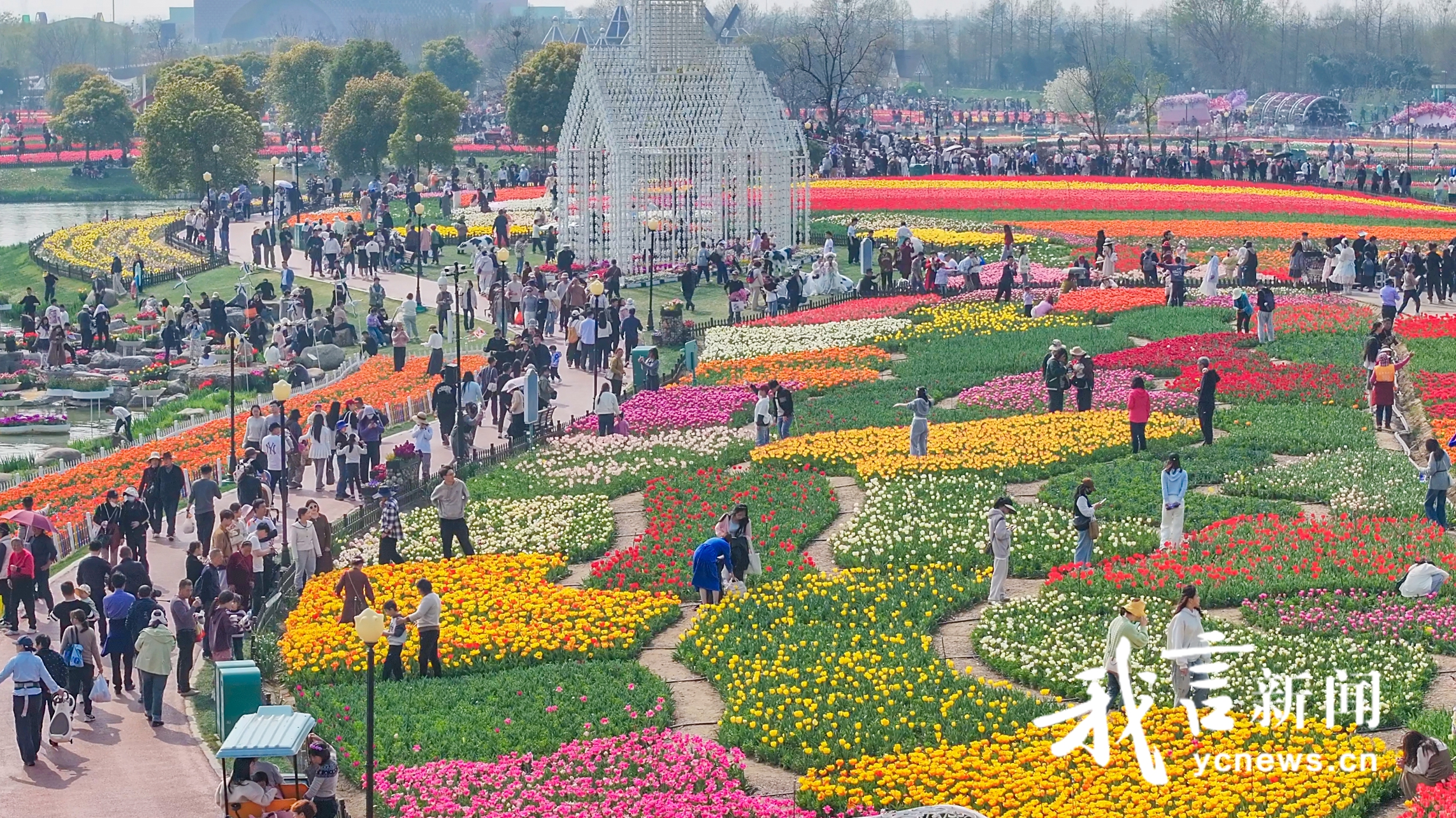 阳光明媚,春意融融。在大丰荷兰花海,300多个品种的郁金香竞相开放,五彩斑斓的花朵交织成一片花的海洋,仿佛被大自然打翻的调色盘,各地游客纷至沓来,与千亩郁金香共赴一场浪漫的“春日之约”。