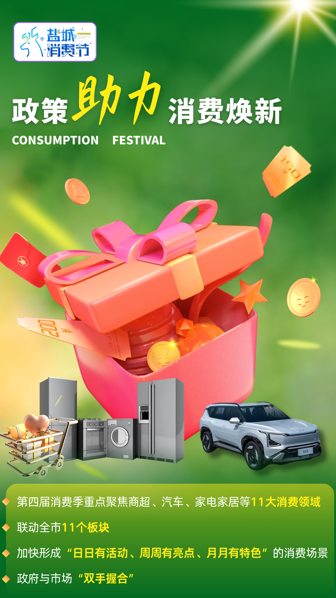 2024年是商务部确定的“消费促进年”。这一年,很重要的主题就是“以旧换新”。因此,第四届消费季,盐城重点聚焦商超、汽车、家电家居等11大消费领域,以旧换新政策激活存量市场,夜间地标评选重塑消费地标,品牌首店引进提升商业能级……这一届消费季,政府与市场的“双手握合”,使消费季跳出短期刺激框架,逐步转向“政策引导—场景创新—产业升级”。