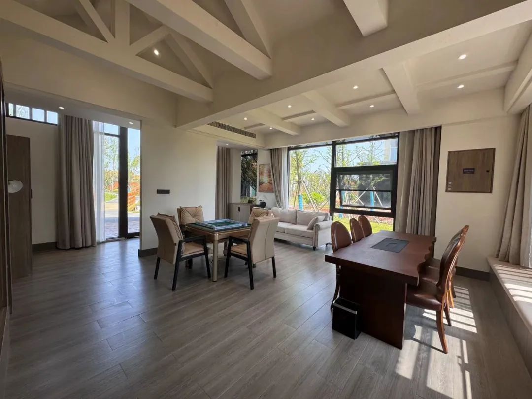 接驳车定点接送,半小时左右直达球场,实现落地即挥杆;双语球童全程陪护,韩语指示牌随处可见,休息座椅旁还贴心配备韩式大麦茶与传统茶点;韩餐主厨定制特色料理,在射阳也能吃到家的味道……