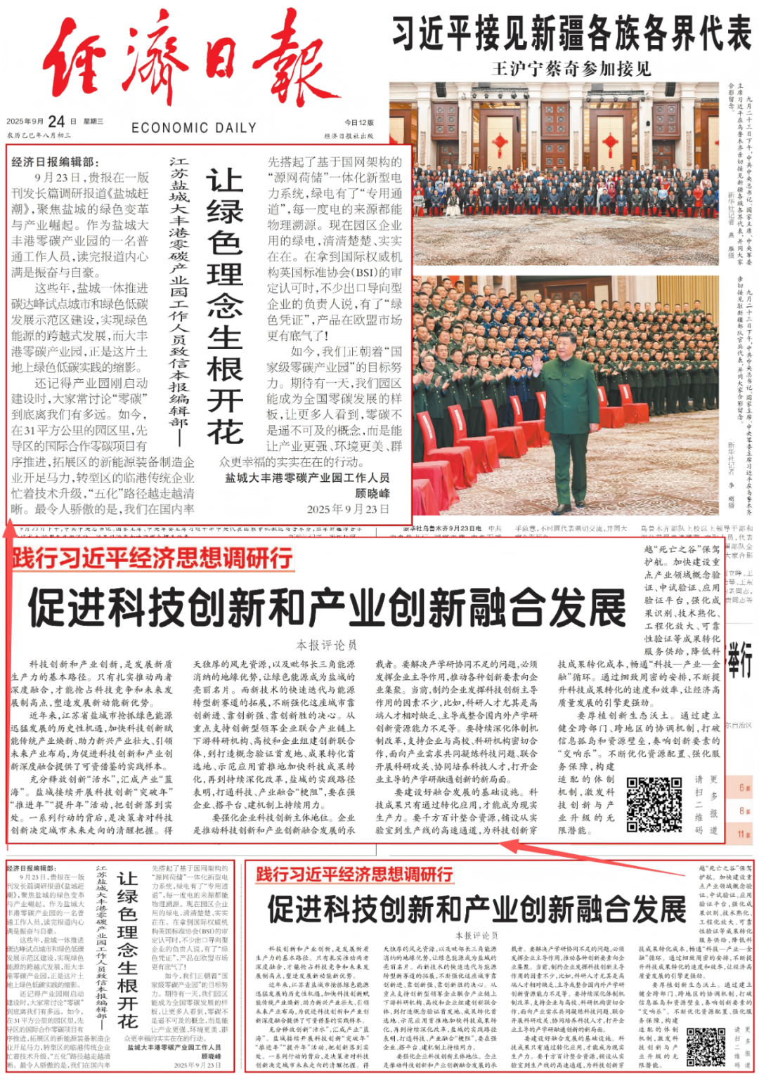 9月23日,贵报在一版刊发长篇调研报道《盐城赶潮》,聚焦盐城的绿色变革与产业崛起。作为盐城大丰港零碳产业园的一名普通工作人员,读完报道内心满是振奋与自豪。