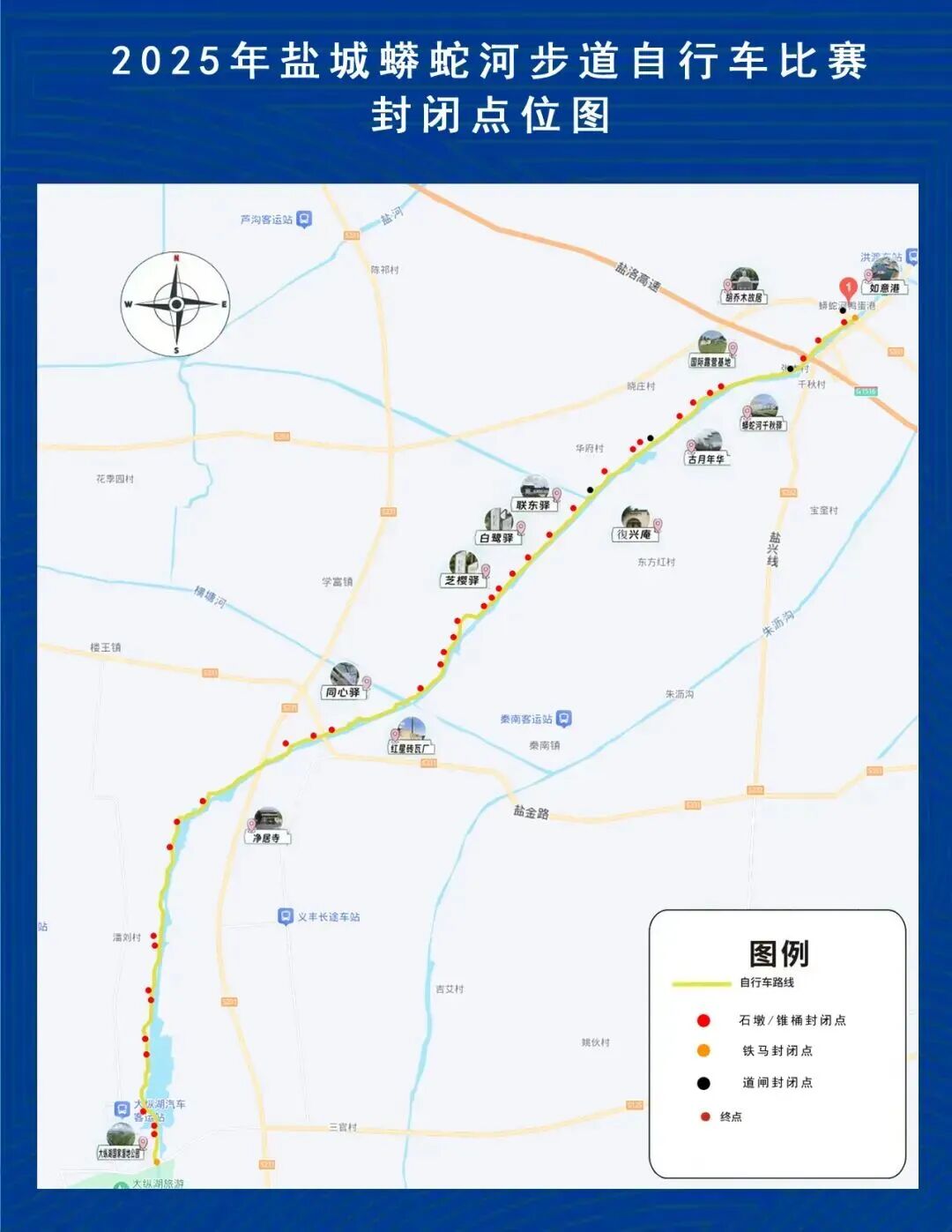 2025年10月1日,盐都区蟒蛇河风光带北半幅举行“骑遇蟒蛇河”(首骑)和“舟游蟒蛇河”(首发)活动,为确保活动顺利进行,保障活动期间道路交通安全畅通有序,根据《中华人民共和国道路交通安全法》《中华人民共和国道路交通安全法实施条例》《江苏省道路交通安全条例》《大型群众性活动安全管理条例》有关规定,公安机关交通管理部门将在活动期间对部分道路采取临时交通管制措施。现将有关事项通告如下:
