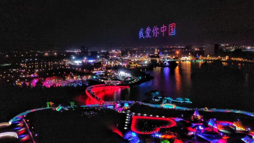 活动丨500架无人机编队飞行,呈现动态国旗、和平鸽等图案,与烟花表演配合。
