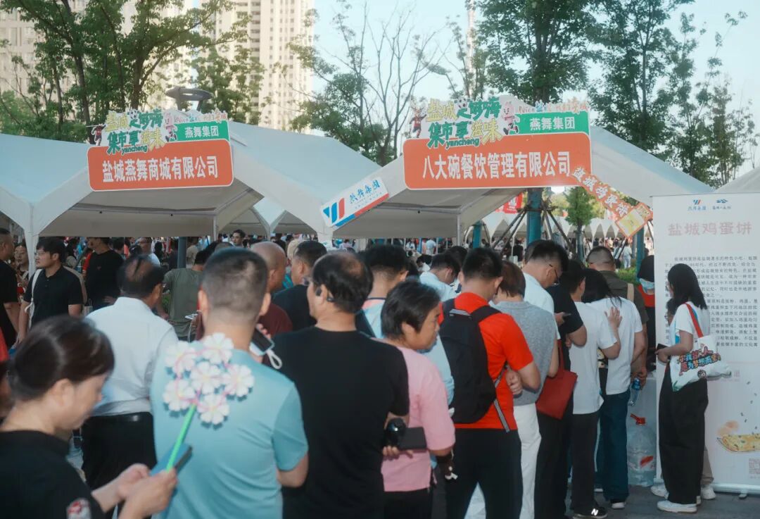 要说最热闹也最馋人的,还得数美食展区。这里无疑是“吃货”的天堂,盐城鸡蛋饼、东台鱼汤面、藕粉圆子、糯米肉圆、大纵湖大闸蟹、黄沙港黄鱼丸、滨海香肠等特色美食纷纷亮相,免费品尝吆喝声此起彼伏,让舌尖与文化同时被唤醒,引得排队人群络绎不绝。“以前来盐城玩,吃过东台鱼汤面,味道很鲜。刚才又买了盐城鸡蛋饼,咸香微甜很上头!”一名来自江阴蓝澄球迷会的球迷说。