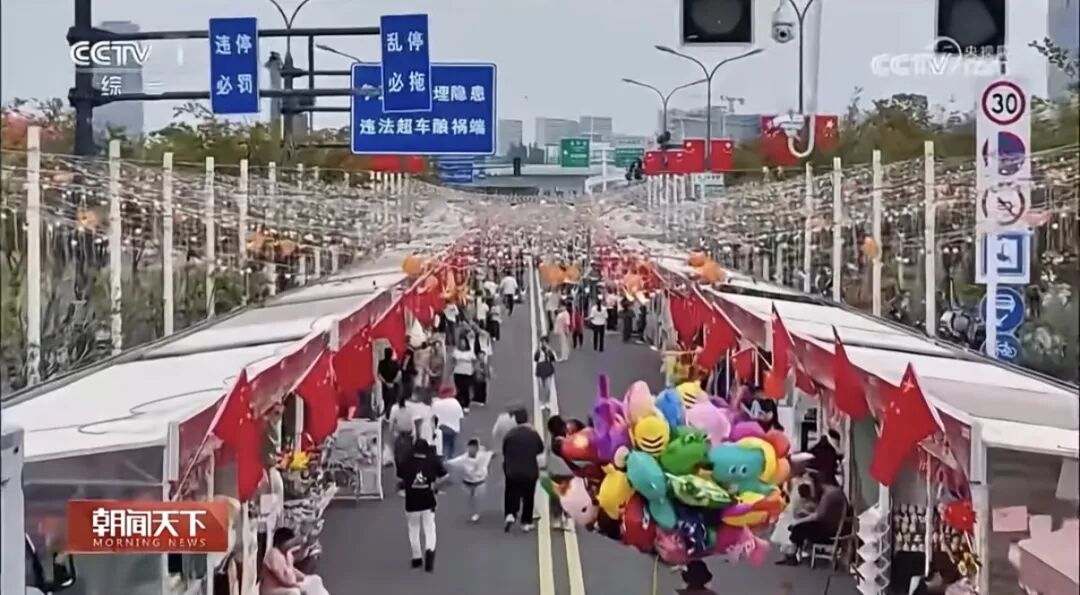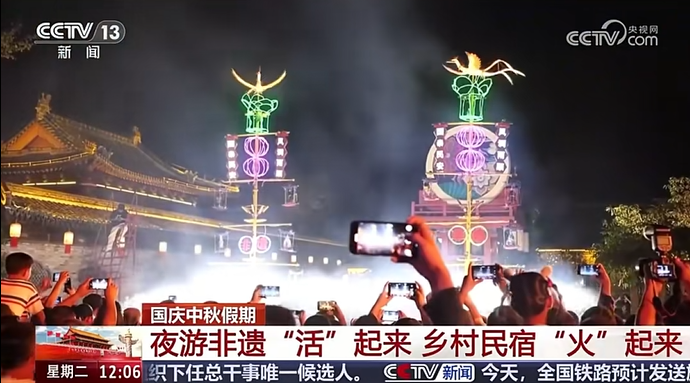 国庆中秋假期,民俗活动与“夜经济”激活反向旅游流量,乡村民宿与文体赛事则解锁消费新体验,文旅市场热度攀升。假日“夜游”持续升温,为激活夜间经济注入新动力。在江苏盐城建湖县九龙口淮剧小镇,千年非遗药发木偶戏在烟火中绽放魅力,数百架无人机同步升空,幻化出灵动造型。