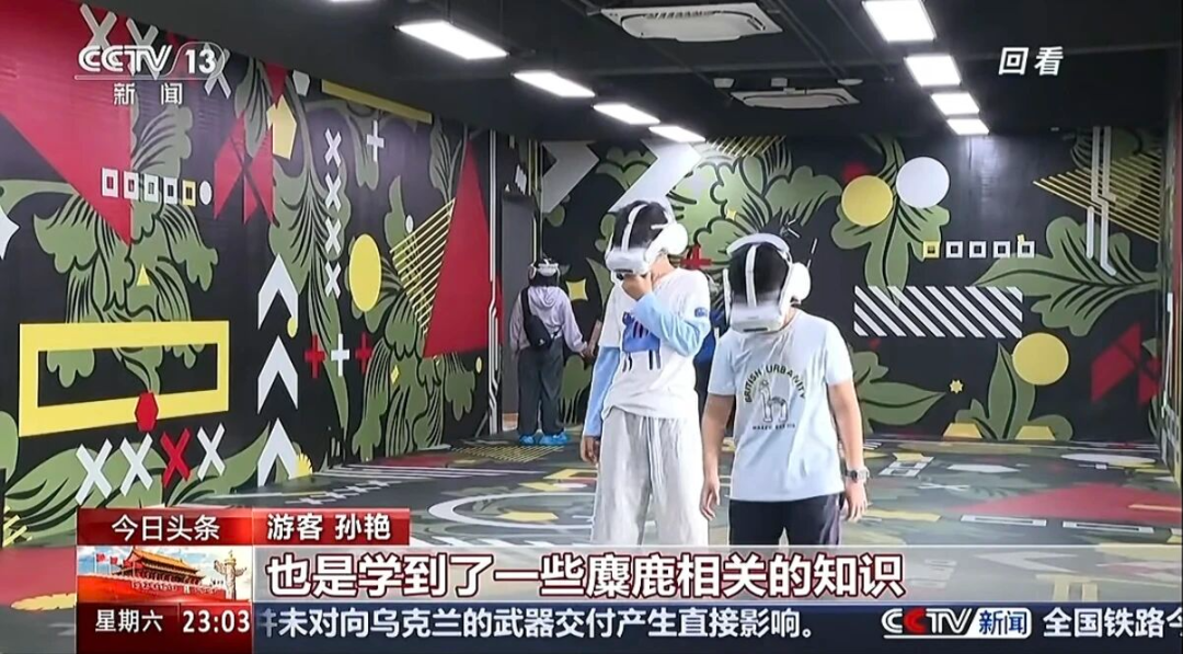 走进中华麋鹿园新上线的沉浸式VR体验区,通过虚拟技术,游客戴上VR设备后,化身湿地精灵,穿梭在芦苇荡与水泽间,纵览湿地秘境,沉浸式感受动物自然生存状态。