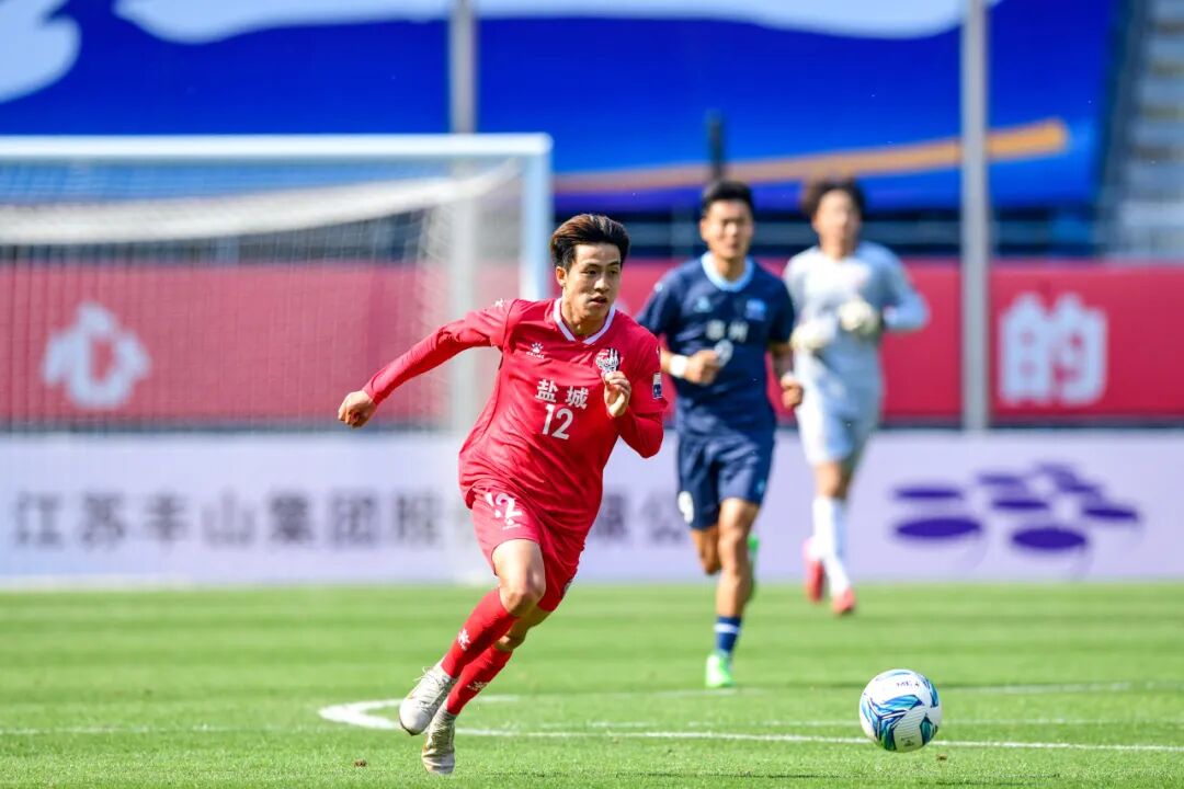 5月24日,盐城主场迎战泰州的比赛中,大学生球员花志成“梅开二度”,帮助球队3比0拿下比赛。
