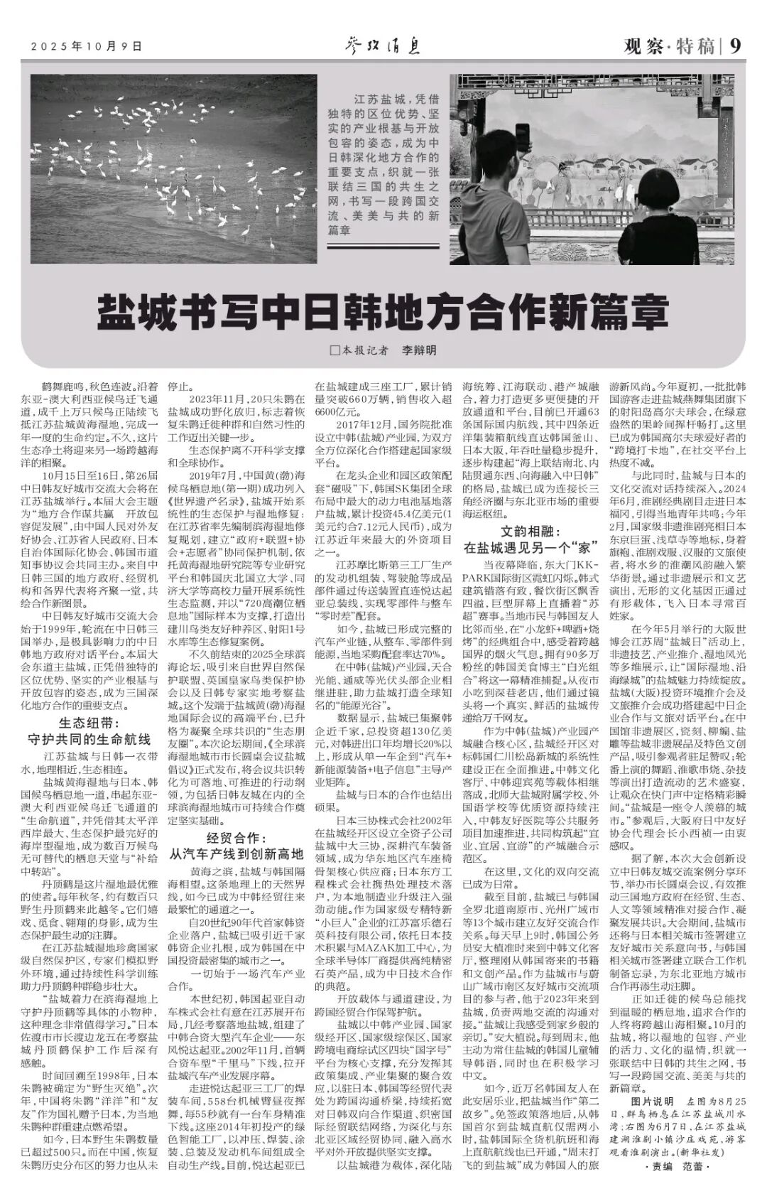 江苏盐城与日韩一衣带水,地理相近,生态相连。