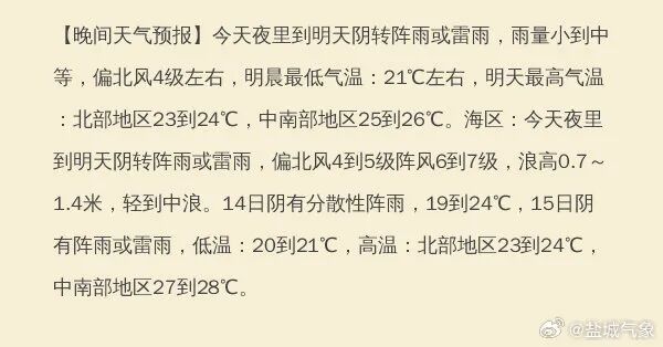 来源:中国天气、江苏气象、盐城气象、盐城发布综合