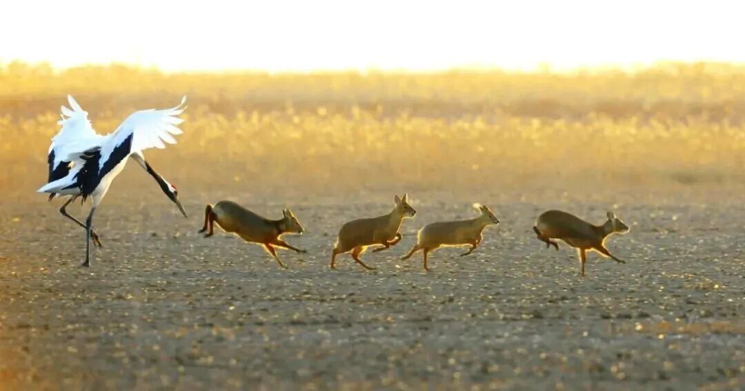 丹顶鹤的翩跹起舞更是点睛之笔!