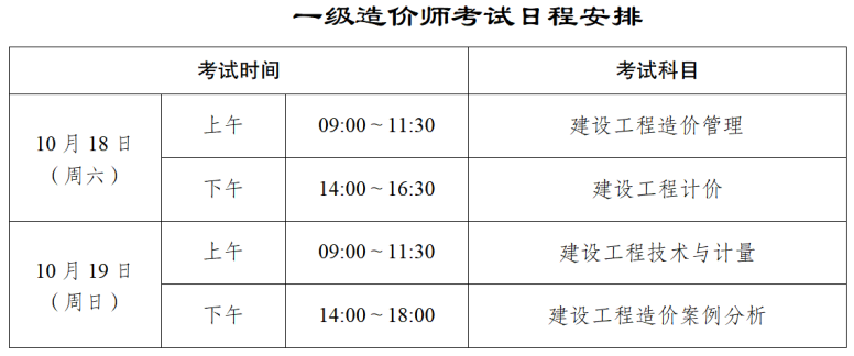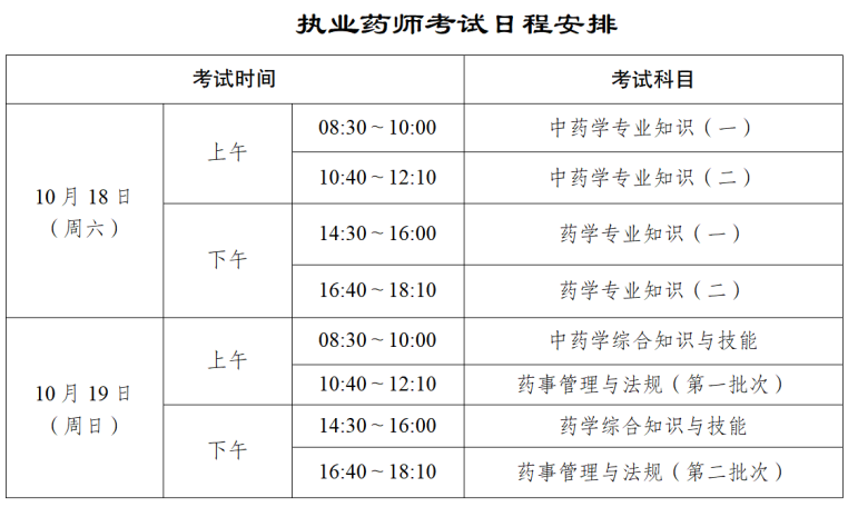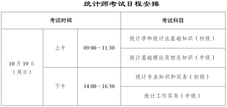 执业药师、一级造价师考试时间为18日、19日两天,统计师考试时间为19日。