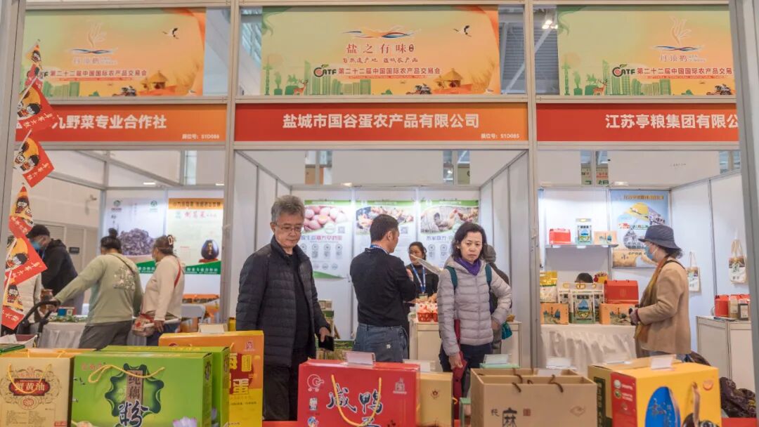 盐城作为农业大市,有着丰富的农业资源和深厚的文化底蕴。此次农交会,我市共有25家企业参展,在省精品展区展示响水西兰花、射阳大米精品品牌农产品。在我市展区,共有16个展位展示展销200余种“盐”字号农产品,其中盐城市优质农产品品牌营销协会设独立展位“盐之有味·丹顶鹤”优质农产品3间,按照“1+9+N”区域模板,集中展示“盐之有味·丹顶鹤”精品系列、银宝自有产品、各县区代表品牌等产品,包括银宝集团海盐、菊花茶饮系列、丝巾礼盒、书签、筷子礼盒等文创产品,以及葛武葛根、秦南海鸭蛋、滨海首乌等名特优农产品。现场,响水西兰花、射阳大米、国谷蛋等多家企业与大型渠道采购商达成合作协议。