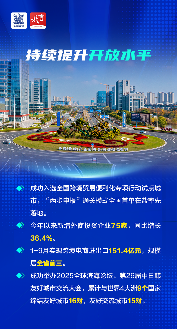 开放是盐城发展的鲜明底色。盐城坚持以高水平开放促进高质量发展,围绕服务构建新发展格局,持续扩大高水平对外开放,对外开放工作呈现稳中有进、进中提质的良好态势。