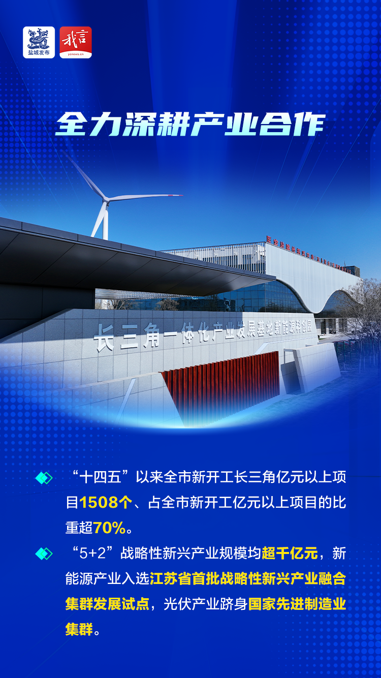 “十四五”以来,全市新开工长三角亿元以上项目1508个、占比超七成,其中落户上海企业投资亿元以上项目超300个。新能源汽车及核心零部件、新一代信息技术等“5+2”新兴产业规模均超千亿元,新能源产业入选江苏省首批战略性新兴产业融合集群发展试点,光伏产业更是跻身“国家队”,成为国家先进制造业集群,为盐城“十五五”冲击“万亿之城”的目标奠定了坚实基础。