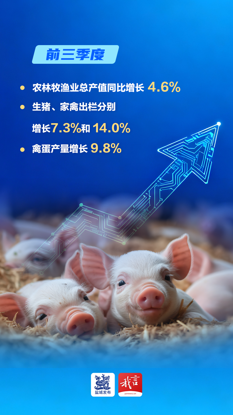 农业生产形势稳定,农林牧渔业总产值同比增长4.6%,生猪、家禽出栏分别增长7.3%和14.0%,禽蛋产量增长9.8%,重要农产品供给保障有力。