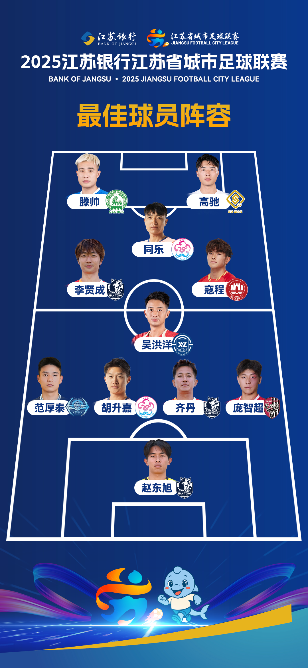 2025年江苏省城市足球联赛(“苏超”)各奖项结果公布,盐城队队员庞智超入选“苏超”最佳阵容,队友郑文煊则以5粒进球跻身射手榜前列。