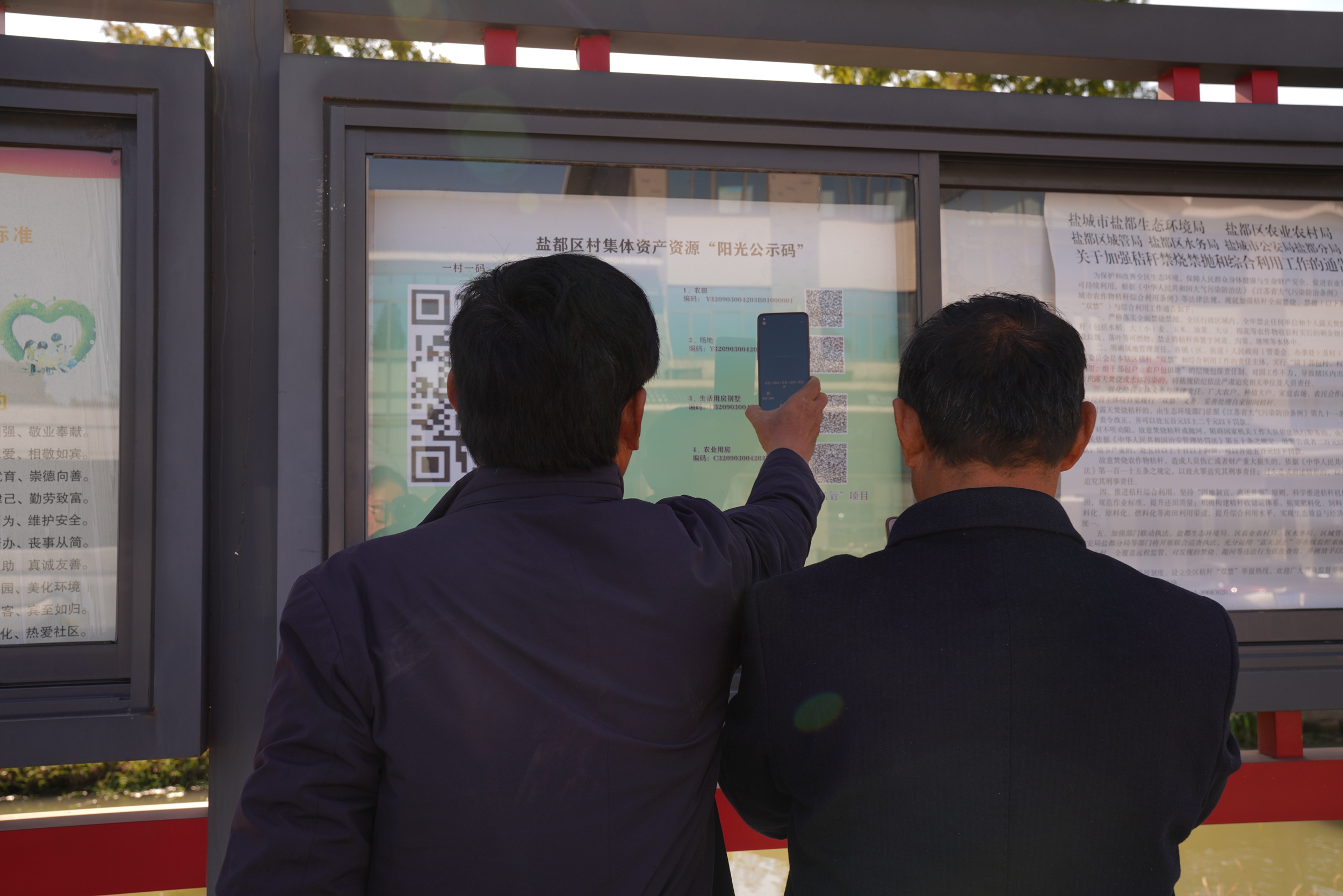 小小的“阳光码”,是盐都推行“一村一码、一资产一码”监督体系的创新之举。群众可随时扫描“阳光码”,查询集体资产情况,还能参与资产资源交易等流程的在线民主议事,将“墙上公开”变为“掌上公开”、“定点公开”变为“随时随地公开”。