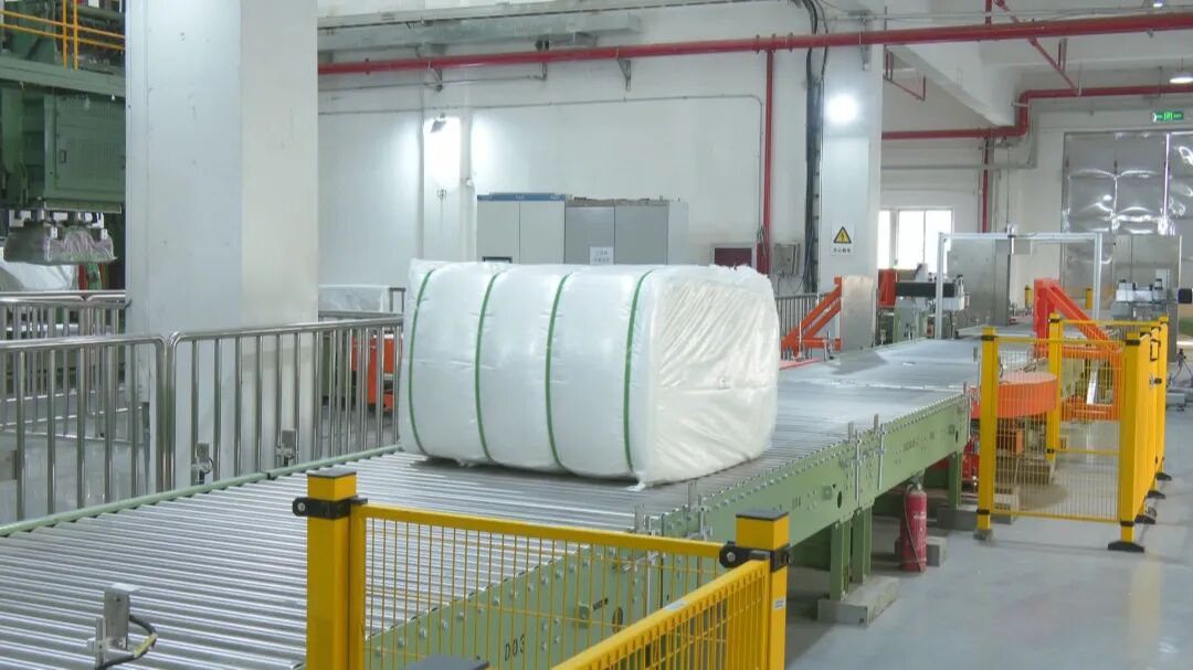 走进一台机器的成品观察窗前,李东林指着窗内的产品介绍:“这种纤维直径仅为头发直径的1/20,手感柔软细腻,不仅吸水性强、抗菌能力好,环保标准还达到婴儿安全级别,广泛应用于服装、家纺、个人卫生护理用品等领域,目前已是安踏、帮宝适、洁柔等知名品牌的核心供货商。”