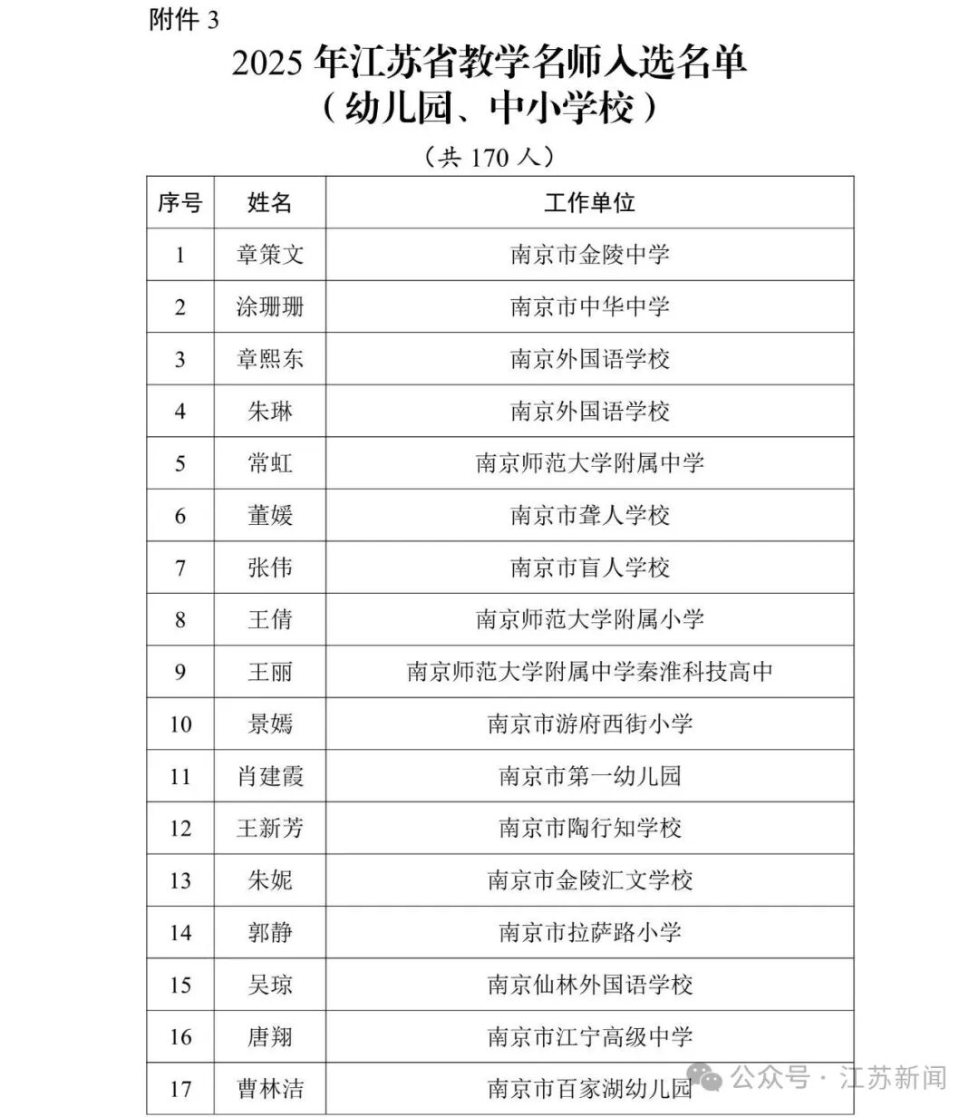 2025年江苏省教学名师名单